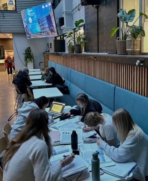 Populært med tirsdagsåpent!Tirsdagsåpent på Kvadraturen videregående skole er kjempe populært. Svært mange av våre elever benytter seg av dette supre tilbudet.Hver tirsdag etter skoletid kan elevene jobbe med lekser sammen med medelever og samtidig få hjelp av flinke studenter fra UiA), få gratis middag og fri trening i styrkerommet – med veiledning fra våre dyktige idrettselever 💪📚🥪 Alle bilder: Sondre Heldal